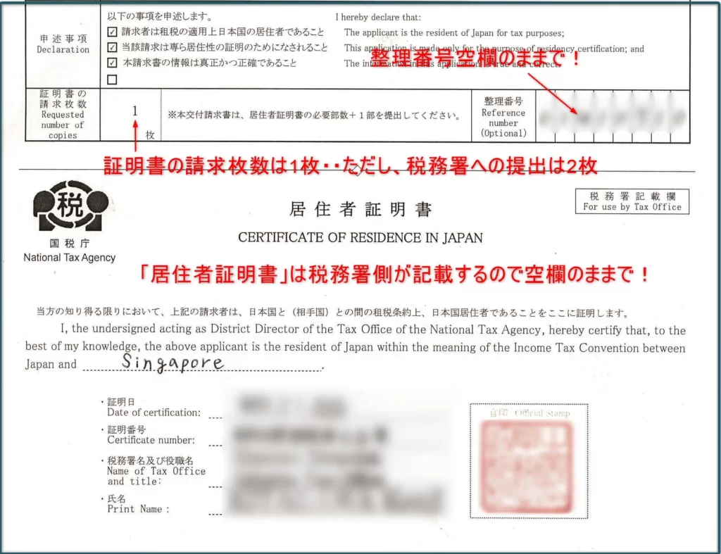 - 整理番号及びその下の「居住者証明書」は税務署側が記載するので空欄のままで!