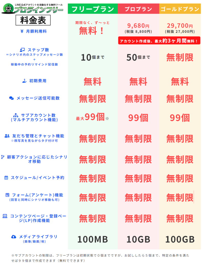 | 機能・料金 | プロラインフリー | Lステップ |