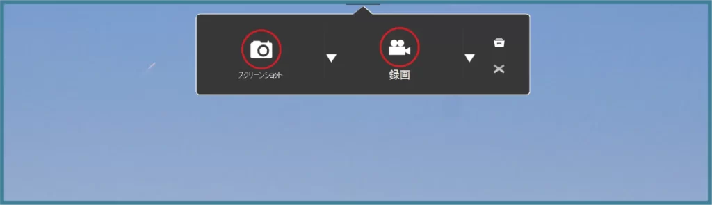 ✓最下部のツールバーは、画像キャプチャ開始、録画キャプチャ開始、画像を編集、クラウドに公開機能があります。
