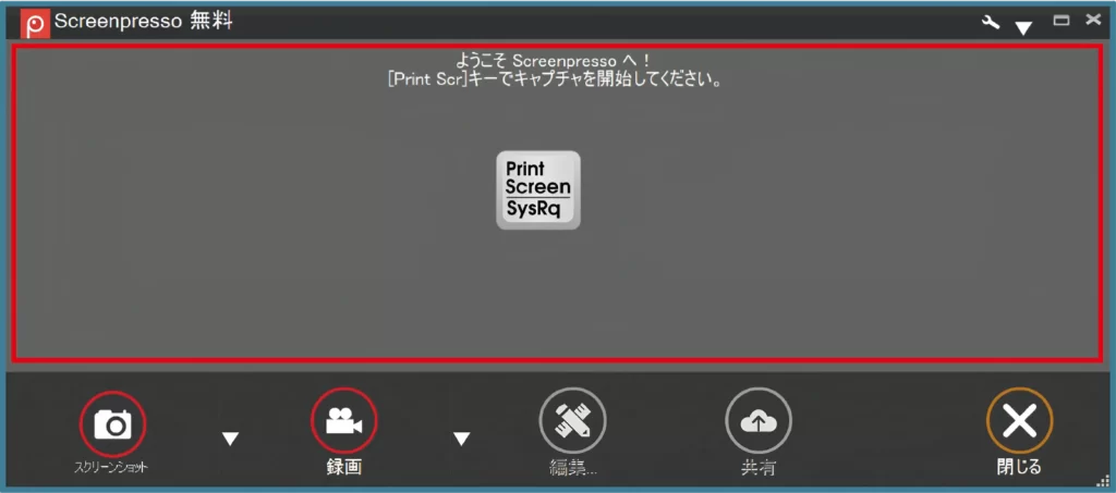 『Screenpresso』を起動すると、次のような画面が表示されます。
