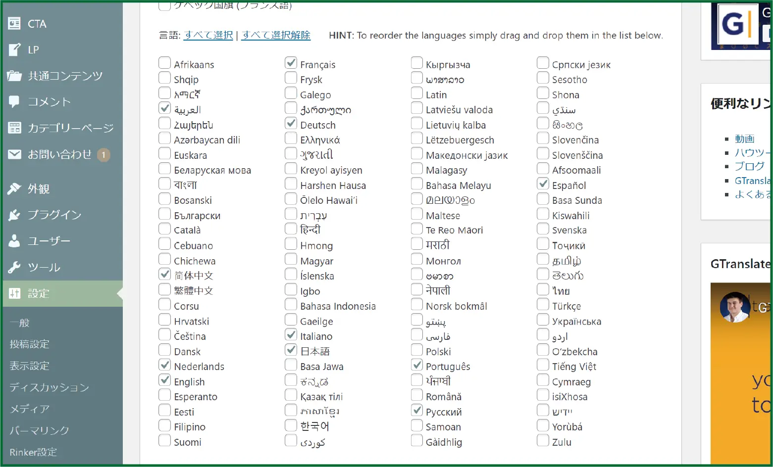 「Translate WordPress with GTranslate」は、日本語非ネイティブが母国語でWEBサイトを見たい場合に、少しサポートできるぐらいのニュアンスの翻訳機能であることは、心得ておきたいものです。